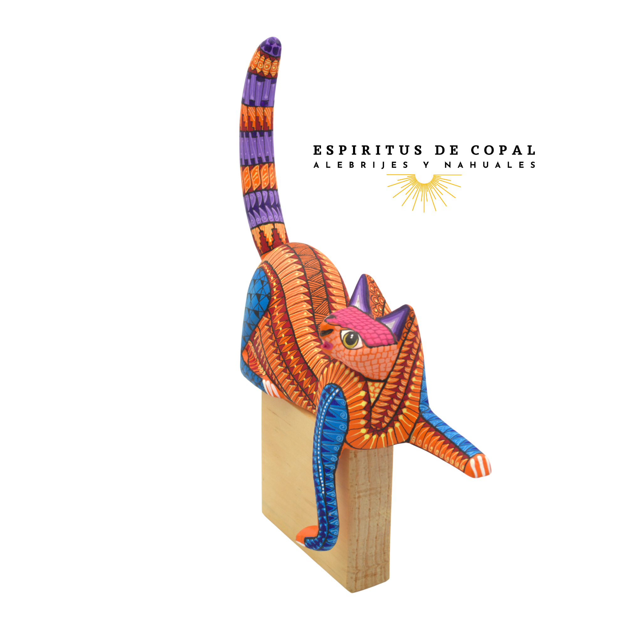 Alebrije Gato Zapoteca Tallado en Madera de Copal | Espíritus de Copal Oaxaca