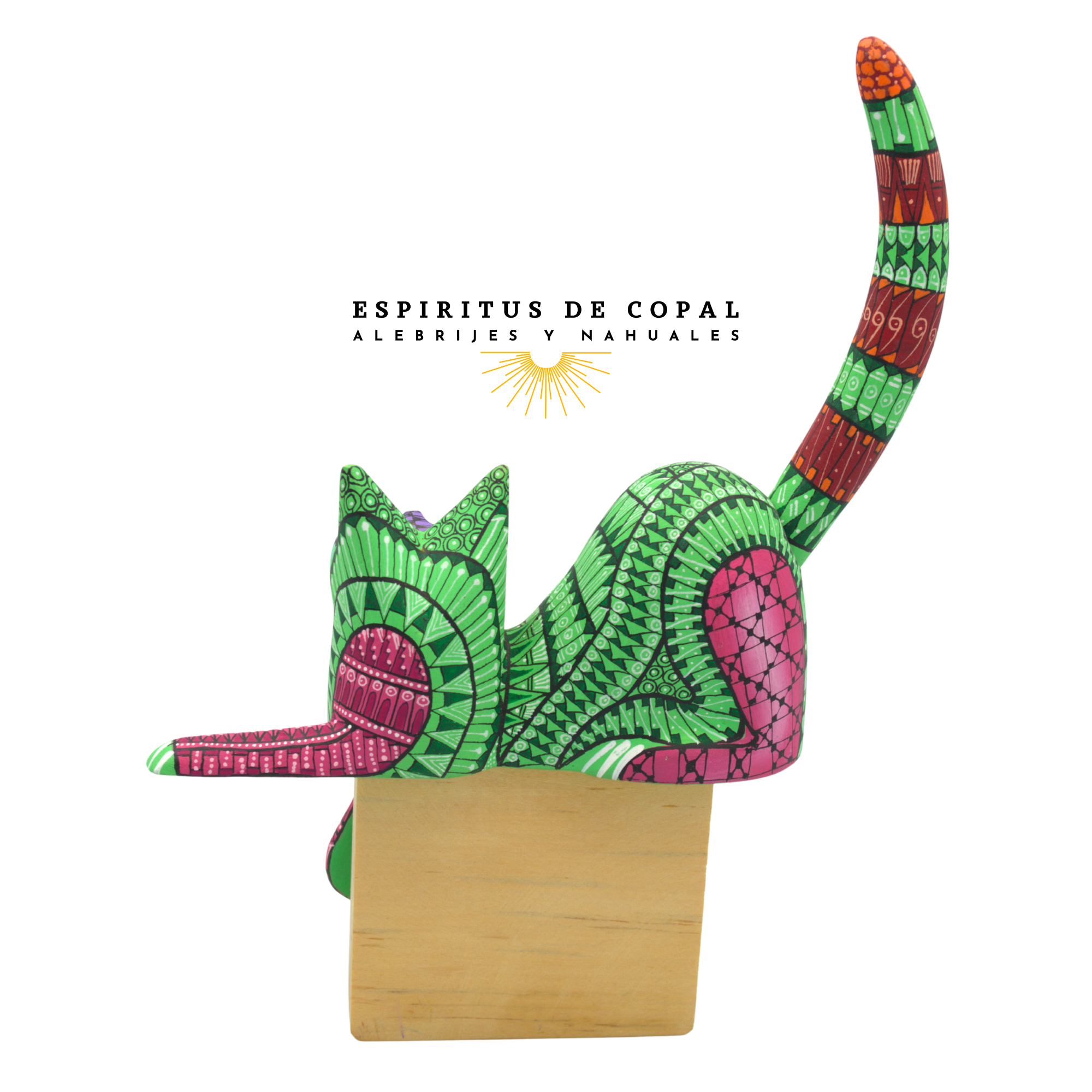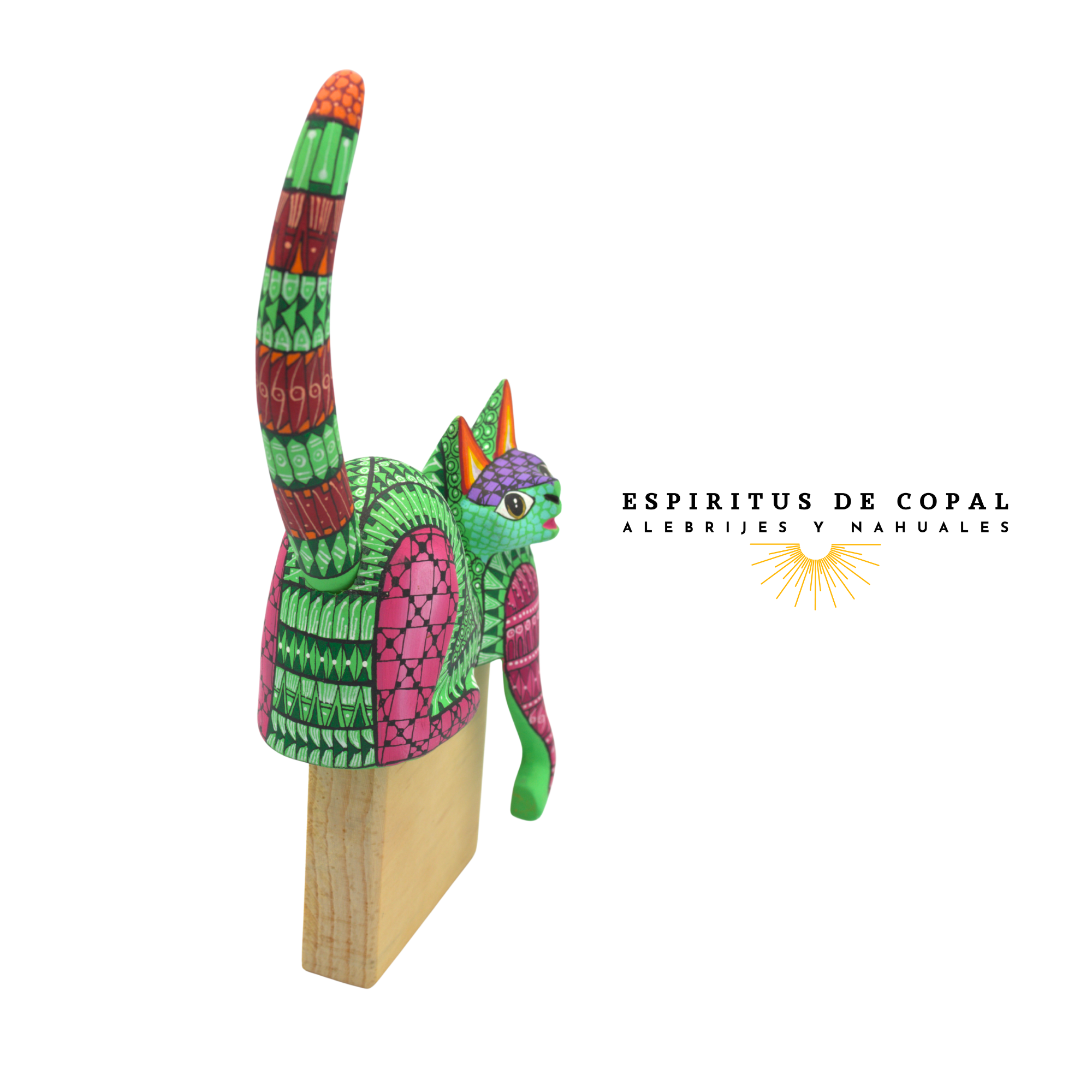 Alebrije Gato Zapoteca Tallado en Madera de Copal | Espíritus de Copal Oaxaca